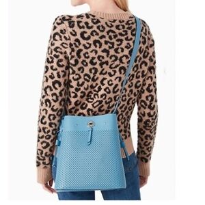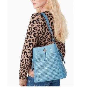 Kate Spade Marti Small Leather Perforated Bucket Bag Shoulder Bag Niagara Blue