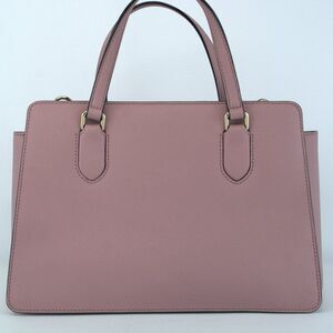 Chic mauve satchel with sturdy top handles. Includes a removable strap. Gold hardware details.