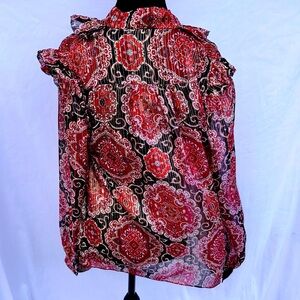Kate Spade Medallion Metallic Silk Blouse Size Small S SHEER Lightweight Ruffle