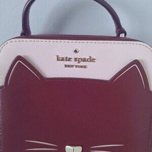 Charming cat-shaped "Meow Daisy" crossbody bag in burgundy and pink from Kate Spade. Features a playful design with a top handle and removable crossbody strap. EUC, flawless condition.