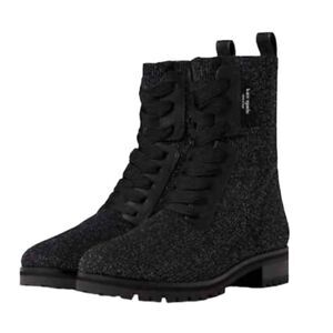 Kate Spade Merigue Knit Combat Boots Black with Silver Sparkle NEW Size 7.5