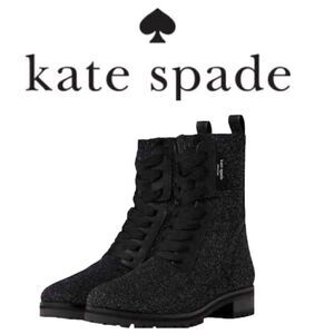 Kate Spade Merigue Knit Combat Boots Black with Silver Sparkle