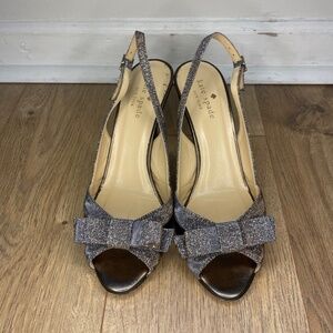 Kate Spade Metallic Bow Slingback Open Toe High Heel Size: 7.5