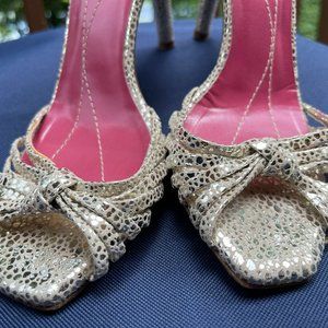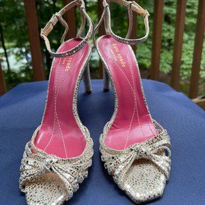 Kate Spade | Metallic Gold Dot Print Leather Knot Strappy Heel | Sz 7.5