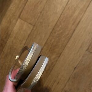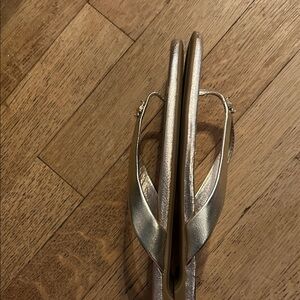 Chic metallic sandals by Kate Spade. Sleek design with a stylish touch. Still on the Kate spade website for sale! I don’t think my daughter ever wore these.