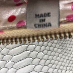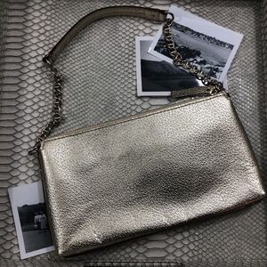 Shiny metallic gold on this Kate Spade shoulder bag for all of your holiday parties! Polka dot lining and a chain give extra pizazz. Used condition with slight rub wear on all for bottom corners as shown in last photo. Includes care booklet. Approximate measurements: 11" x 6" strap drop: 8".