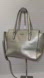 Satchel Crossbody Bag. Classic and feminine handbag designed for everyday use. It features a pebbled leather exterior with silver-tone hardware and a two-way spade jacquard lining. This satchel offers a magnetic tab and a center zip closure, with an interior that includes zip and dual slip pockets for organization. It also comes with an optional and adjustable crossbody strap for versatile wear. See photos for callouts: indentations on the back and a spall spot on the tab at the end of the zipper.