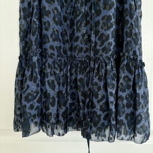 Kate Spade Metallic Silk Chiffon Leopard Print Blouse Ruffle Blue