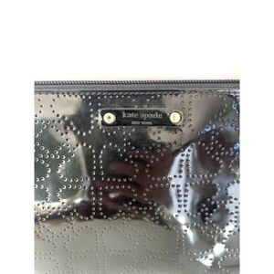 Kate Spade Metro Black Patent Hearts Pouch Clutch Makeup Bag Top Zip