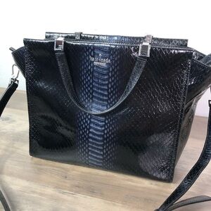 100% cow leather. Removable and adjustable crossbody strap. Deep gradient/ombré blue. Very rare style. Comes with the dust bag.