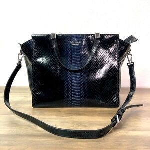 In nice preloved condition. One small area on the top near the handle that shows some wear(please see photos) and one area on the back that has a small nick(also pictured). Mild makeup staining on the lining.