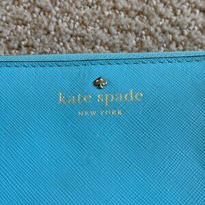 Kate Spade Mikas Pond Lacy Wallet Saffiano Leather Robins Egg Blue Zip Around WLRU 1689 Feminine Bright Contemporary