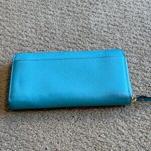Kate Spade Mikas Pond Lacy Wallet Saffiano Leather Zip Around Robins Egg Blue