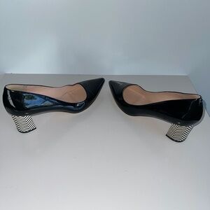 Kate Spade Milan Black Patent Chevron Block Heels Size 9.5