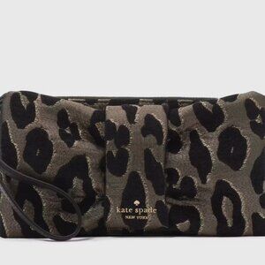 Kate Spade Millie Bow Leopard Fabric Wristlet Clutch Black KE650 NWT $299