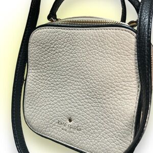 Excellent use condition like new. No callouts. Adjustable and removable straps. Two zip compartments in gold tone hardware. Approximately: 6.5”x 6.5”x 3.25” strap drops: 19”-23”