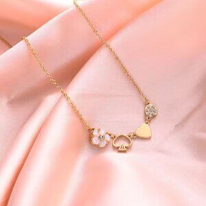 Elegant gold necklace featuring floral and heart charms. Perfect for any occasion.