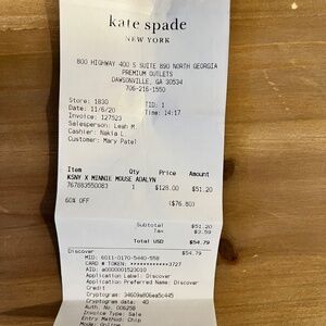 Barely used Kate Spade Minnie Mouse purse and matching wallet. Have receipts for both items.