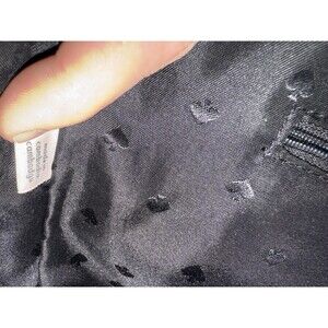 A few makeup stains on the interior that are very small and hardly noticeable. The outside is in excellent used condition with no major flaws. Original strap that is removable if you want to use it as a handbag.
