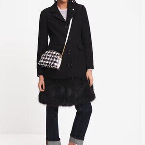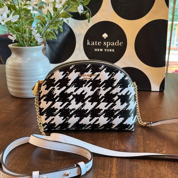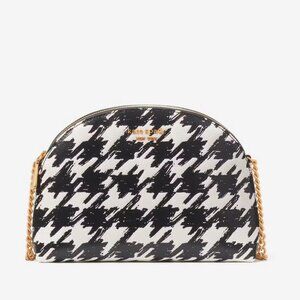 Kate Spade Morgan Painterly Houndstooth Double Zip Dome Crossbody - Black White
