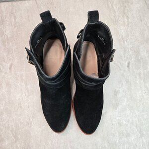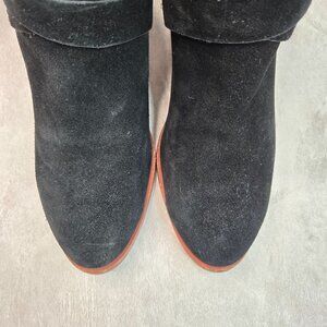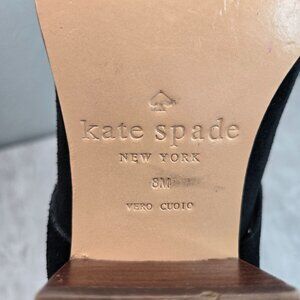 Kate Spade Moto Ankle Boots 8 Black Suede Low Block Heel Dressy Chic Bow Booties (B1-354)