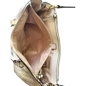 Dual leather handles with a drop of approx. 4.75 inches; Removable and adjustable shoulder strap approx. 17.25 inches