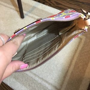 Lightly Used/In Perfect Condition Multi-Colored Kate Spade wristed. Pink/lavender/lime green in color. Four credit card slots on the inside. Perfect for summer!