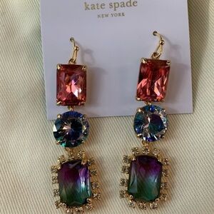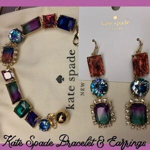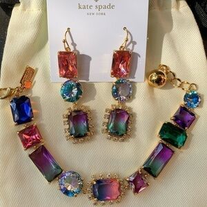 This is honestly the most beautiful Jewelry set I own from Kate Spade (long time collector). I have an extra one, so this set is up for sale and includes both the bracelet and matching earrings. The brilliant gemstone sparkle with magnificent pops of ombré color! The colors are heavenly! The earrings are on card stock and the bracelet has a dust bag.