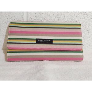 Kate Spade Multicolor Stripe Canvas Large Wallet Pink Lining Checkbook Holder