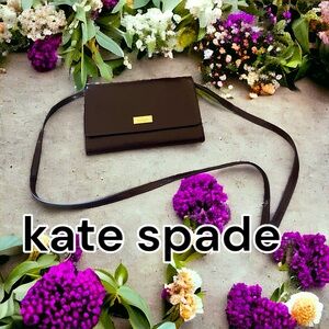 Stunning NEW WITH TAGS kate spade clutch or crossbody! Reposhing this leather kate spade crossbody I purchased from @delmarvadesigns. Perfect size for an iPhone, ID, makeup - see pictures of the space and extra room in this bag. Gorgeous color in trend is a fabulous neutral. Silver kate spade logo plate on front. Envelope flap snap closure. Patent sheen. 3 compartments: one zipped, one snaps, one open. Two sizable pockets on exterior under front flap. One back exterior pocket same length as bag. Back compartment has one large pocket for bills, 6 card slots. The back of the zip pocket has another 6 card slots.