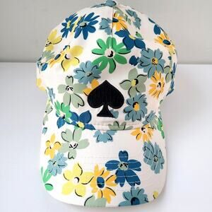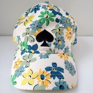 New with tags -- Kate Spade graphic floral print baseball cap hat with black embroidered logos on the front and back.