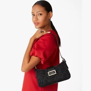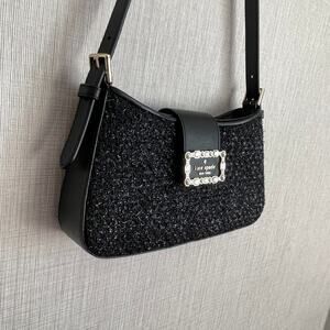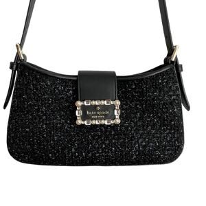 Kate Spade NEW Reegan Black Tinsel Tweed Shoulder Bag Pearl Embellished Party