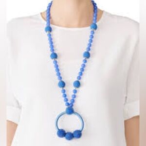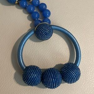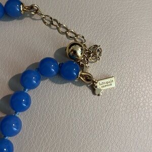 Elegant blue beaded necklace from Kate Spade New York. Tags removed, never worn. Features a unique circular pendant. Perfect for any occasion. Set in gold-tone mixed metal