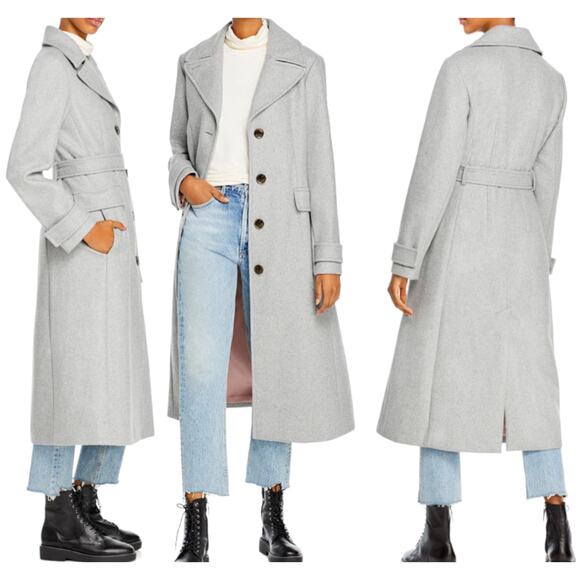 Kate Spade NWOT Gray Belted Notch Collar Coat Trench Size S Wool Blend Overcoat