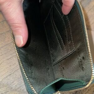 Kate Spade NWOT Green Wristlet - Shiny Gold Hardware -Gold Zipper Pocket on Back