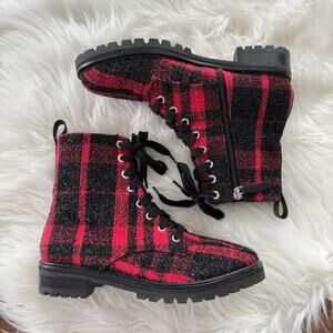 Kate Spade | NWOT Jemma Boots Red Black Plaid Combat Metallic Festival Holidays