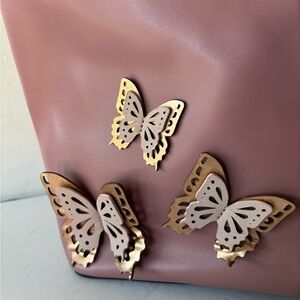 Kate Spade NWOT Mauve Leather Tote With Butterfly Leather Appliqués