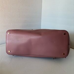Kate Spade mauve leather large tote. Beautiful butterfly appliqués on front. Interior has Mauve fabric lining with the Kate Spade signature spade on the fabric. Has 1 zippered pocket and 2 slip pockets. Bottom has 4 gold tone studs to stand on. Leather handles have a 8” drop.