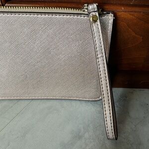 Kate Spade NWOT Taupe shimmer flat zip top Wallet Wristlet 8w x 5 h
