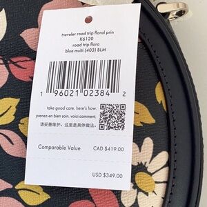 Kate Spade NWT Blue Multi Traveler Road Trip Floral Print Round Crossbody Bag