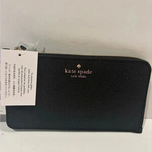 Kate Spade NWT Lucy Glitter Medium L-Zip Wristlet Color Black