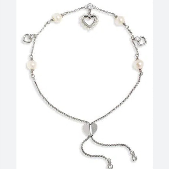 Add a dazzling touch to your everyday outfit with this slider bracelet featuring freshwater pearls, imitation pearls and heart charms.