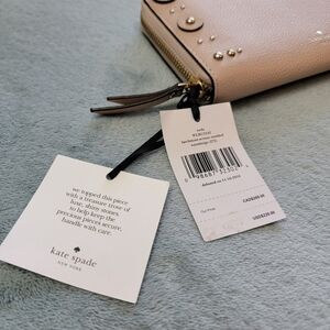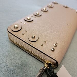 Kate Spade NWT Warm Beige Pebbled Leather Large Neda Studded Zip Wallet NWT