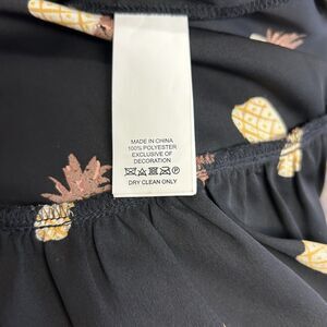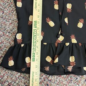 Kate Spade NY Black Yellow Pineapple Print V-Neck Ruffle Hem Blouse Size XXS