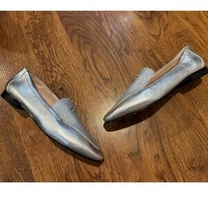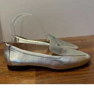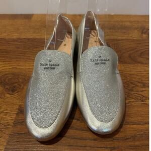 Kate Spade NY City Lights Silver Leather Loafers - Size 7B Designer Classic