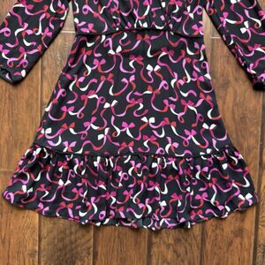 Kate Spade NY Dress Sz 6 Bow Print Ruffle Hem Black Pink Red Holiday Party