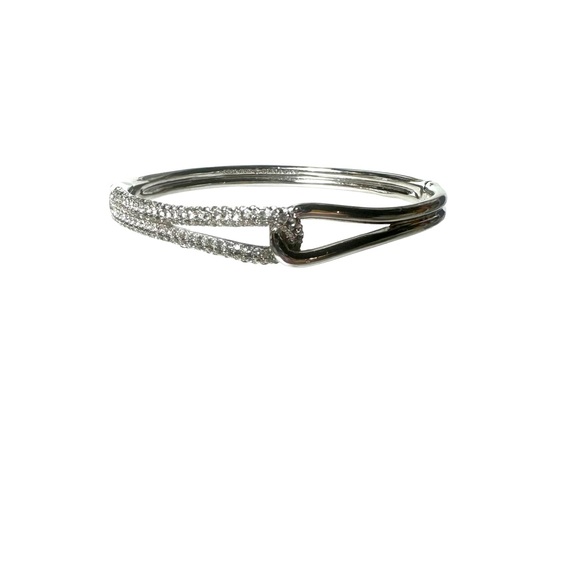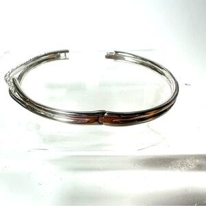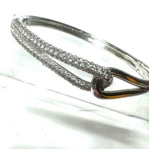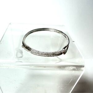 Kate Spade New York Get Connected Bangle Bracelet Silver Color Metal Pave Rhinestone. About 2.25” across. Hinged opening.