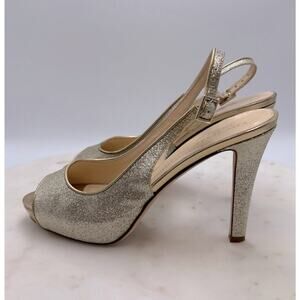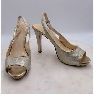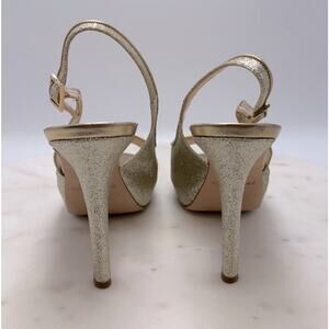 Kate Spade NY Gold Glitter Slingback Pumps 8 Open Toe Holiday Party Heels