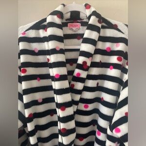 Kate Spade NY Long Sleeve Chenille PlushRobe Confetti Stripe Black White Pink