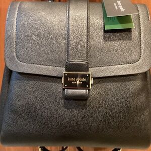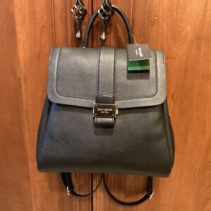Kate Spade NY Nouveau Black Pebbled Leather Flap Bag/Purse/Backpack Medium Size